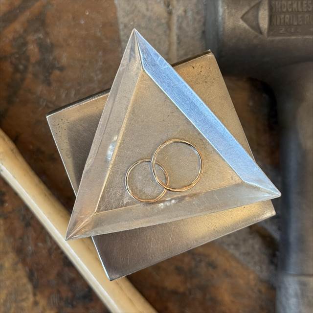 結婚指輪を手作りする最大の魅力はデザインの自由度にあります。シンプルなストレートラインから個性を感じるウェーブデザインまで二人の好みに合わせて細部までこだわれます。チタンは加工の工夫によって表面に槌目模様を入れたりマット仕上げや鏡面仕上げを組み合わせたりと多彩な表情を持たせることができます。さらに内側に刻印や記念日を入れることでより特別感のある結婚指輪に仕上がります。おしゃれでありながら日常使いしやすいデザインを実現できるのが手作りチタンリングの魅力です。